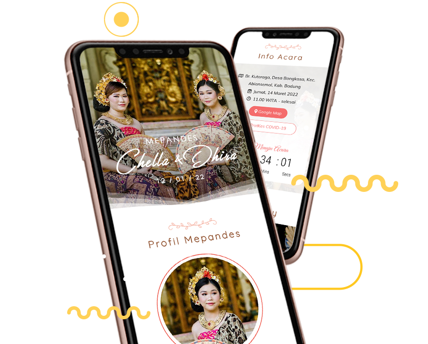 Pawiwahan.id menyediakan jasa pembuatan undangan digital/online dan print/cetak, dengan desain elegan, praktis dan mudah untuk digunakan maupun dibagikan. Undangan pernikahan digital menjadi pilihan tepat untuk para calon pengantin masa kini di Bali, Indonesia untuk menyebarkan hari bahagia pernikahannya.